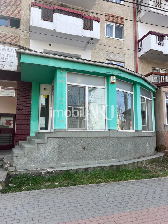 Vitrină mare la stradă, cu vizibilitate foarte bună, ideală pentru branding și promovare.
